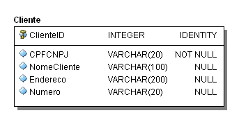 No exemplo acima, a tabela Cliente segue o conceito de usar um campo da própria entidade para identificá-la unicamente. No caso o CPF/CNPJ é ideal.