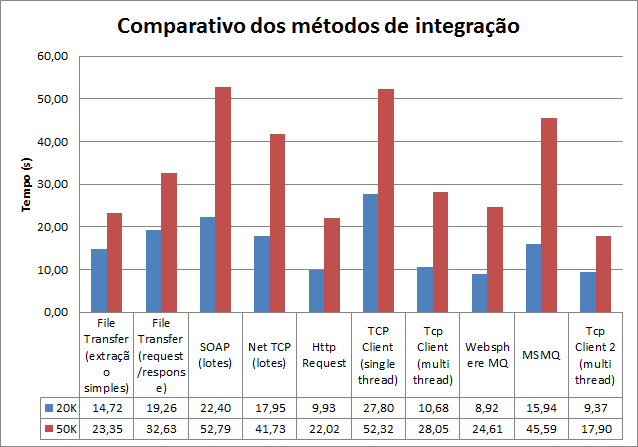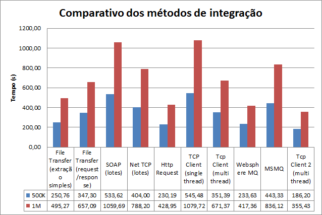 O novo servidor foi ~17% mais rápido do que a abordagem utilizando Websphere MQ.