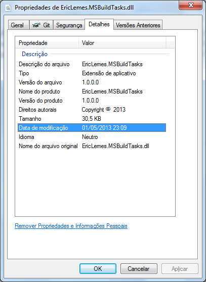 Ao compilar o projeto agora, perceberemos que o Assembly possuirá todas as propriedades, mas apenas um arquivo precisa ser alterado para mexer no identificador de versão.